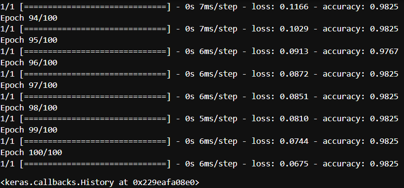 model.fit(questions_padded, answers_padded, epochs=100, batch_size=64, verbose=1)