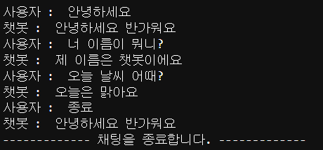 print("챗봇 : ", response)