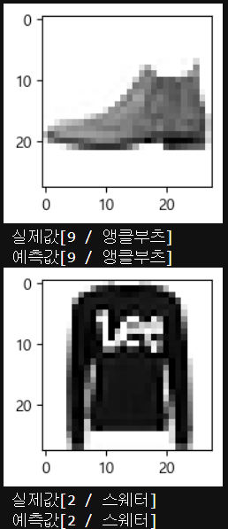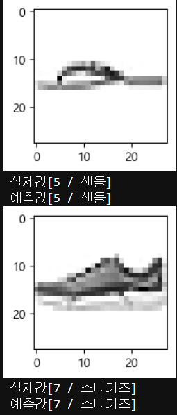 → 실제이미지 출력, 예측값, 실제값을 각각 출력해 주세요