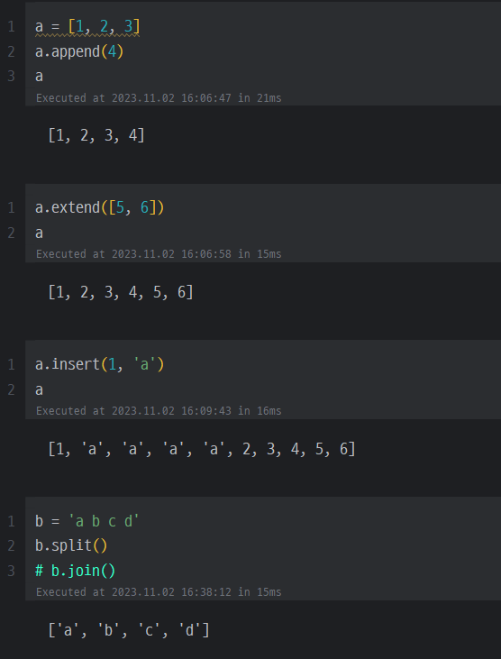 - extend : 맨 마지막에 다른 리스트를 추가