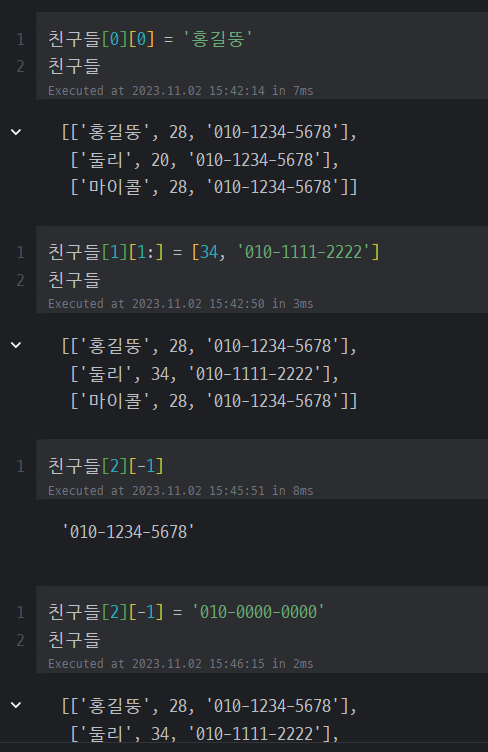 - 리스트 내용 수정 (index 사용)