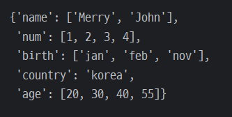 - 키를 리스트 형식으로 쓸 경우 (error)
