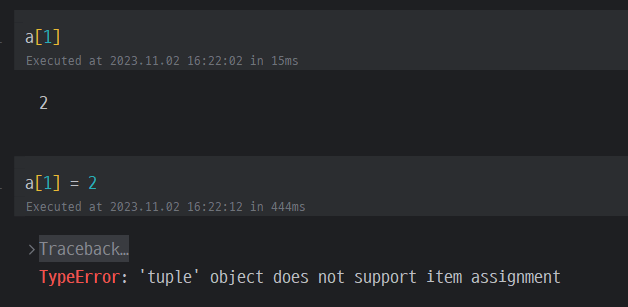 - append, insert, extend, remove, pop, sort 는 사용 할 수 없다.