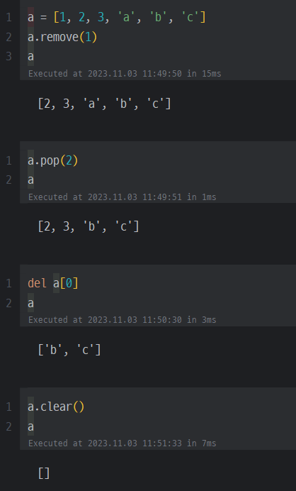- index를 입력하지 않는 경우 리스트의 마지막 요소가 삭제된다 →stack에서 유용하게 사용가능