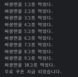 print(f'짜장면을 {jajang}그릇 먹었다.')