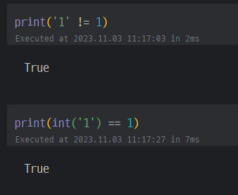 - True, False (꼭!!! 첫 글자가 대문자)