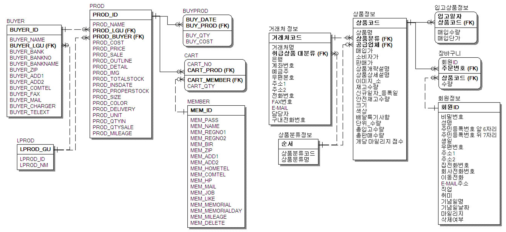 - 자식쪽 테이블에는 FK존재(외래키, 해당 컬럼을 참조하는 값)