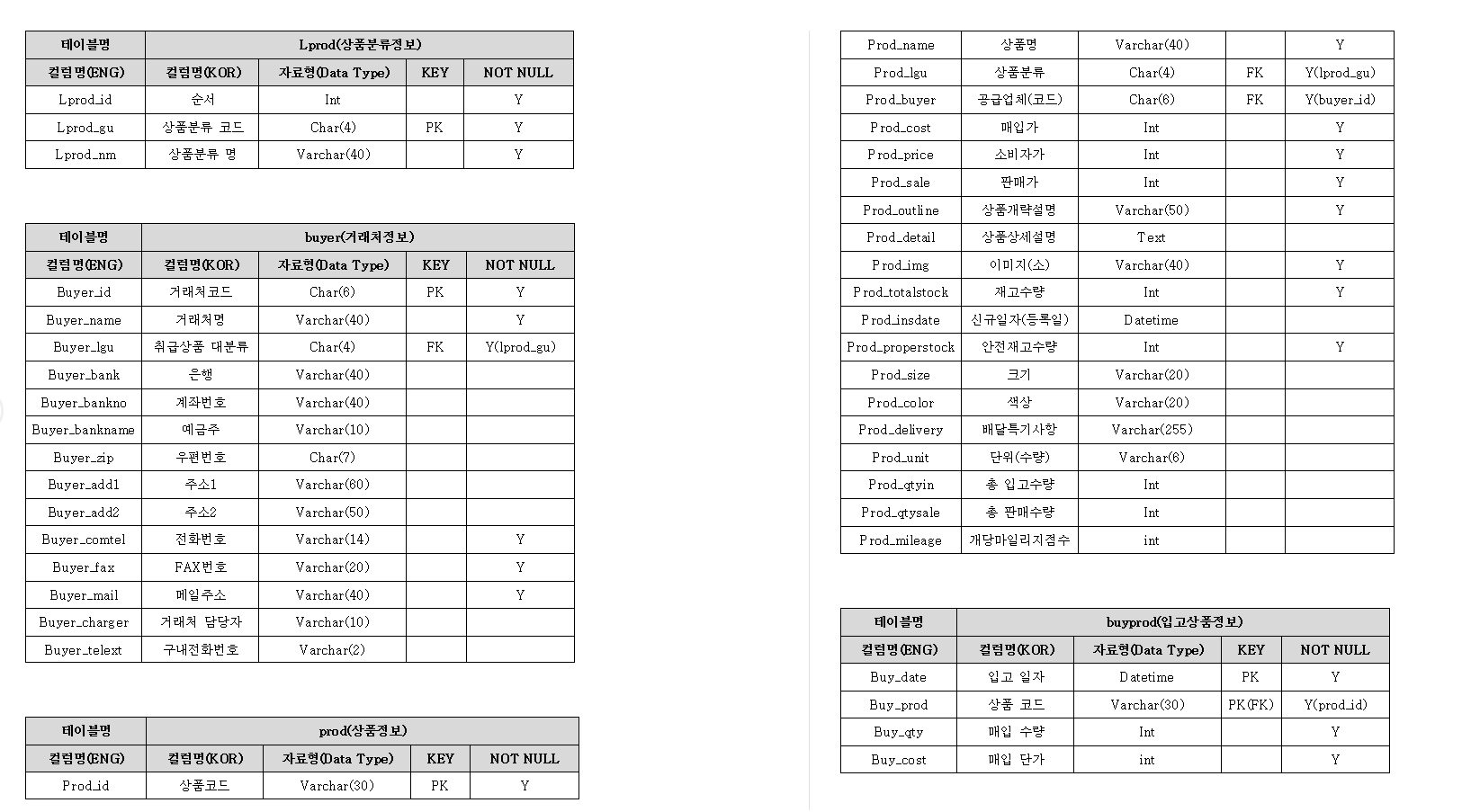 - Table(테이블)설계 (DB설계라고 칭합니다.)