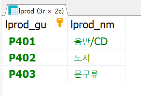 WHERE lprod_gu NOT IN (SELECT prod_lgu FROM prod);