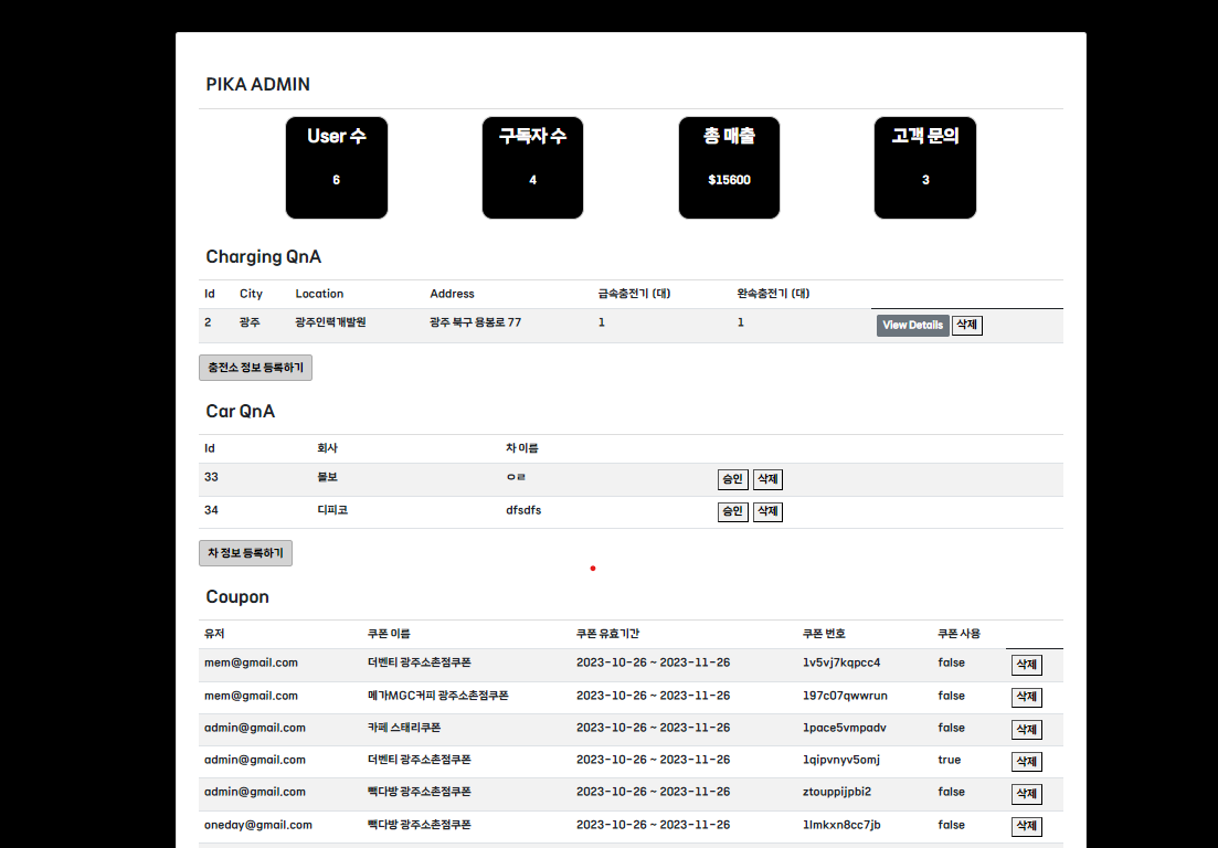 - QnA 리스트 (승인/삭제)