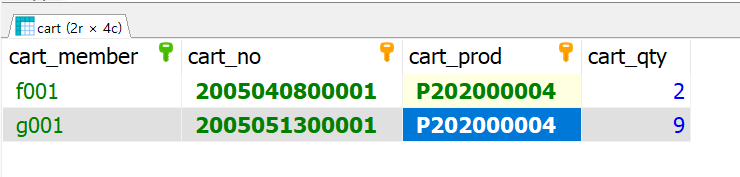 - 확인용 코드 : SELECT * FROM cart WHERE cart_prod = 'P202000004';