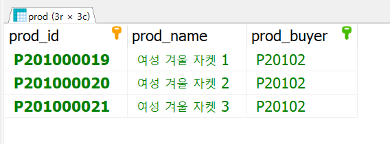 2. 그럼 찾은 buy_prod값은 prod_id, cart_prod와 같다.
