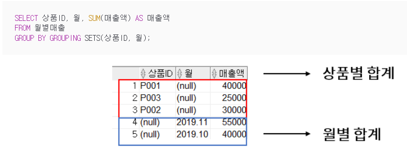 2. SETS으로 지정한 소그룹별 합계만 간단하게 보여준다.