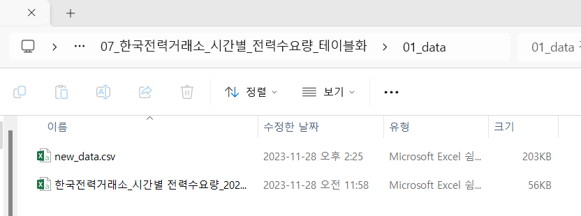 - 다운로드 : 한국전력거래소_시간별 전력수요량 (파일데이터 or 오픈API)
