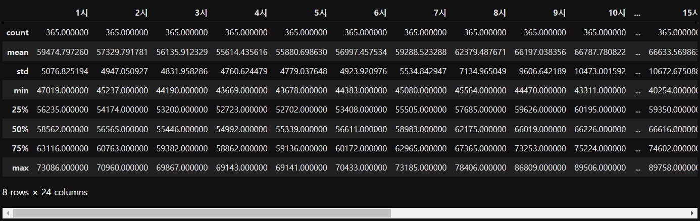 25개 컬럼?(24시간 데이터니까) → 너무 많음