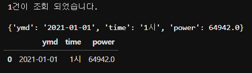 # 조회 Select * From time_power_demand WHERE ymd = '2020-12-31' AND TIME = '24시'