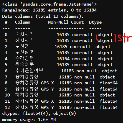 '하차시각':'str'})