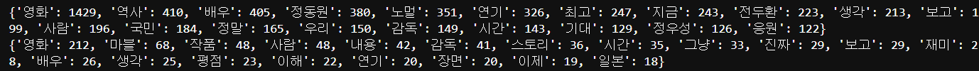 긍정 및 부정 리뷰 형태소 추출하기