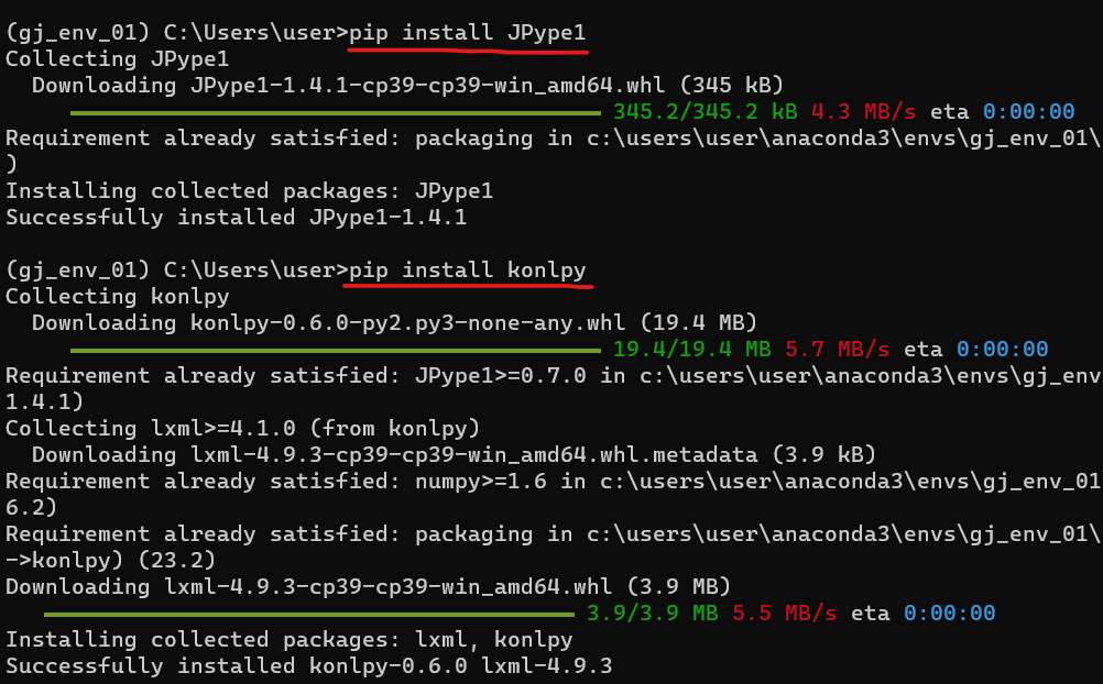 - jpype : java 라이브러리를 python에서 사용할 수 있도록 도와주는 라이브러리