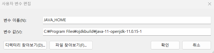 * JAVA_HOME : 경로 - JDK설치 폴더까지