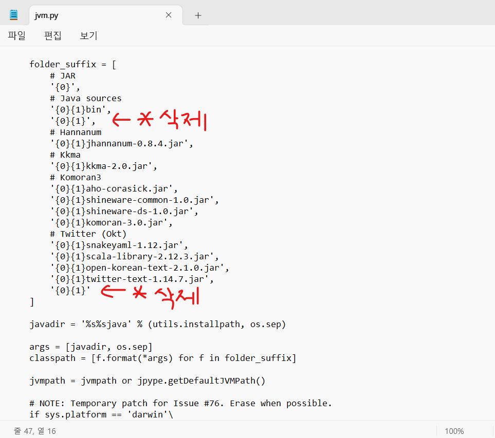 - jvm.py 파일 내에 별표시(*) 삭제하기