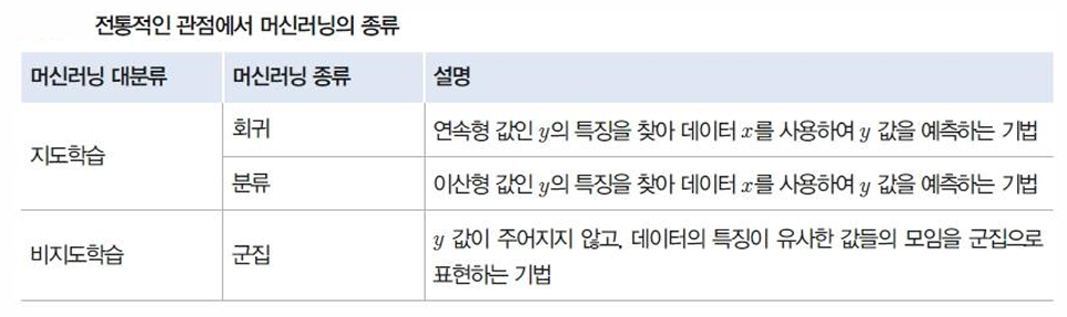 - 지도학습 : 회귀분석 예측(선형, 회귀모델, 연속형 데이터), 분류분석 예측(구분, 분류모델, 범주형 데이터)